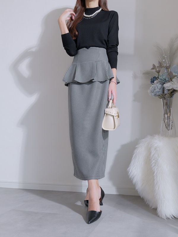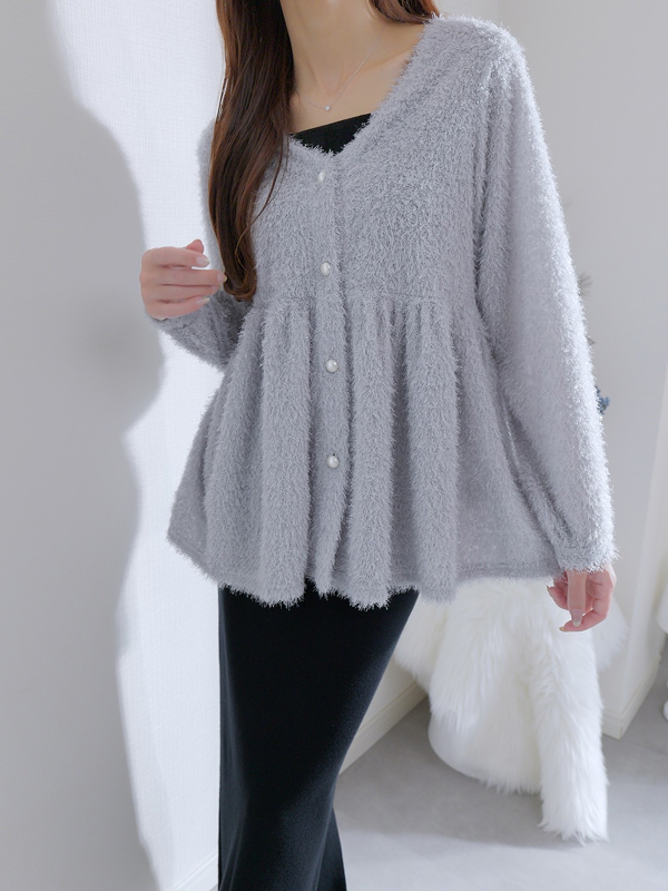 美しく、くびれを描く Vネックペプラムニット