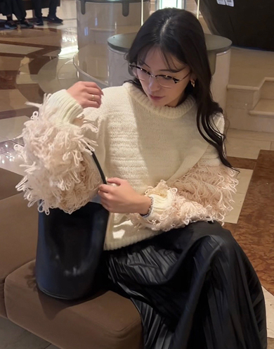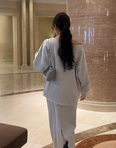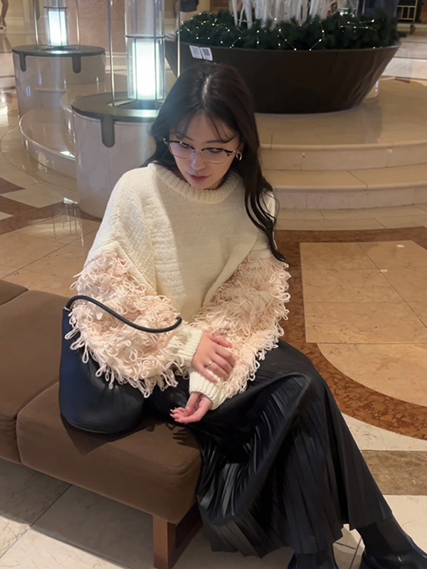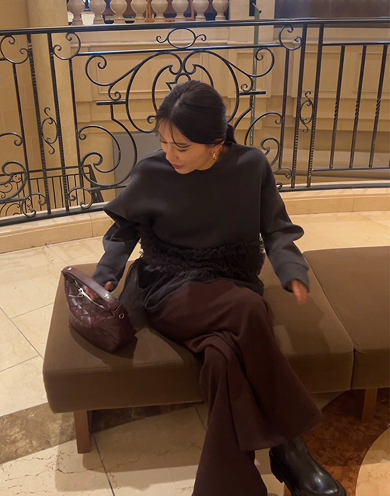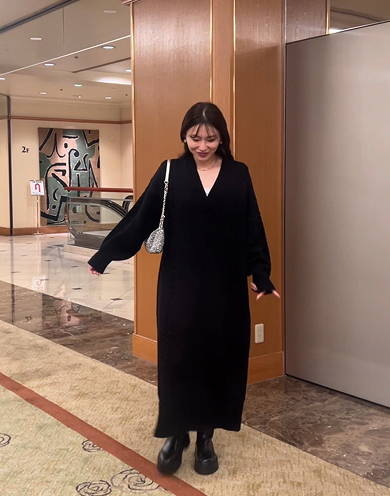美しく、くびれを描く Vネックペプラムニット