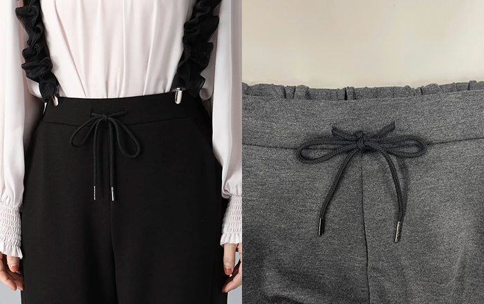 「リラックスして過ごしたいけれど、ルーズに見えるのは避けたい」 そんな本音に寄り添い、フロントはすっきりとした美しさを保ちつつ、バックウエストゴムを施しました。