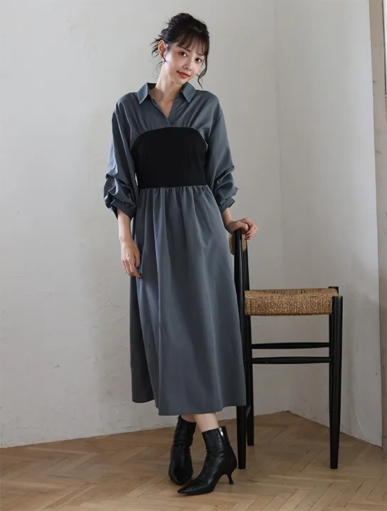 ビスチェ付シャツワンピース